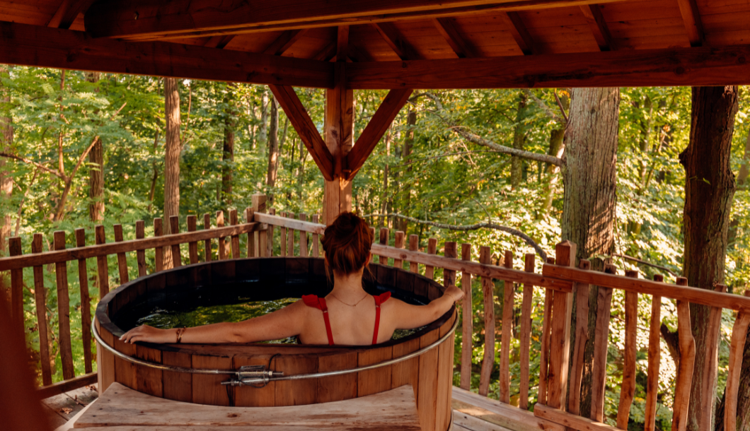 Cabane dans les arbres avec jacuzzi proche Paris : bains nordiques dans l’Oise